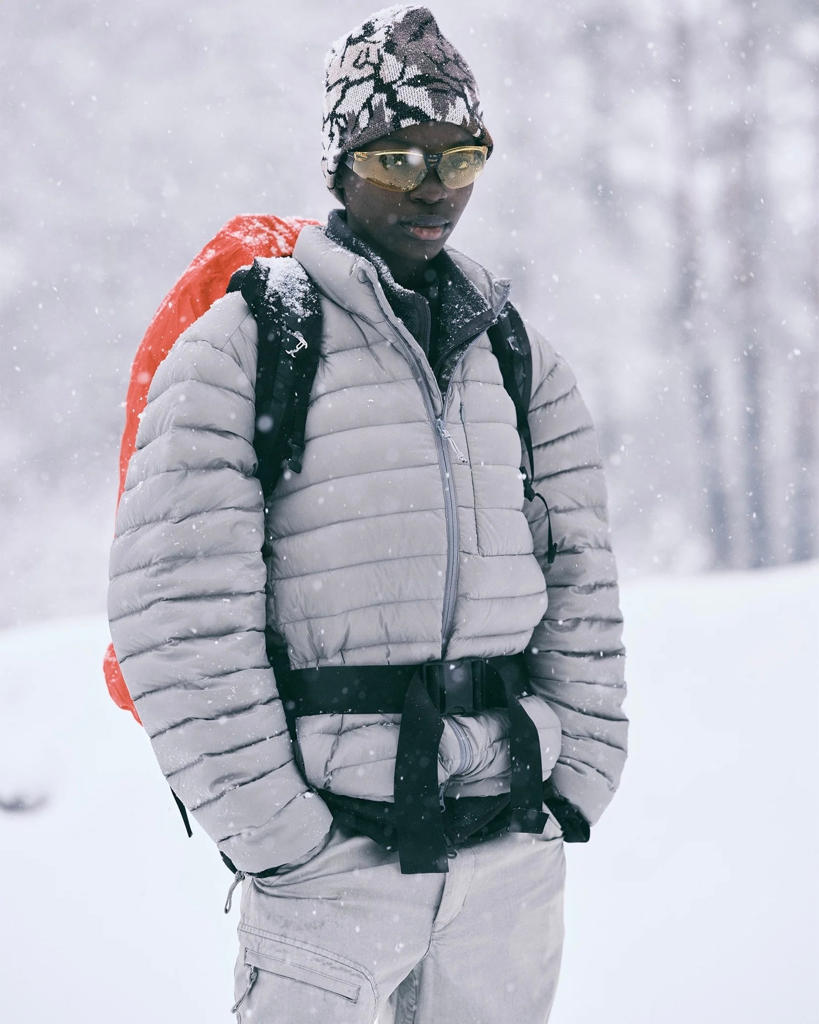 被りが少し浅めなビーニーを最近気になるツリーカモ柄で作ってみました。ソフトな被り心地と浅めのフィットは女性にもおすすめ。シンプルなコーディネートの中で1点ポイントを作ることもでき、ちょびっとだけ入ったウールのおかげで普通のアクリルビーニーよりも肌触りがよい気がします。
