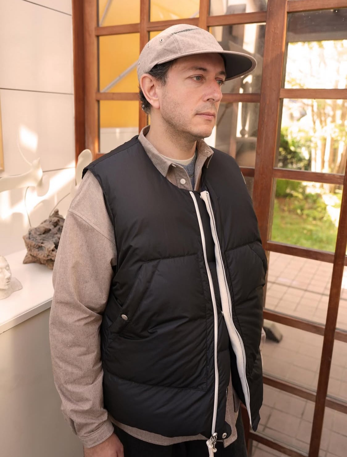 イギリス産ダックダウン(ダウン90%/フェザー10%のFP700)を使用したリバーシブルのダウンベスト。