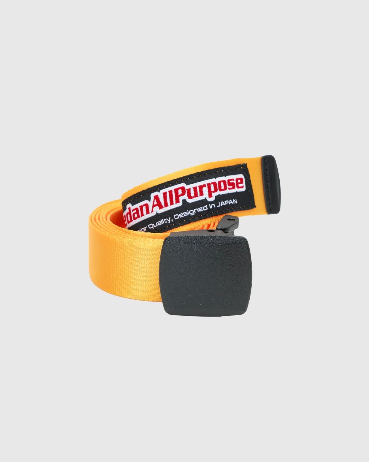 それまでのイメージを刷新するためか、HIP HOPやグラフィティの影響を受けたのか、90年代後半から00年代前半にSurf&Skate系のロゴが変わっていった時代がある。そんな時代をイメージして作ったセダンのスケートロゴ。そのロゴが垂れ下がったテープに鎮座するナイロンベルトを作った。アウトドアブランドが作りそうなナイロンベルトだけども、デニムからスラックスまでいろんなスタイルの味付けに使って欲しいので、カラーもいっぱい作りました。ちょっと太めの30mm幅ベルトが今の気分です。